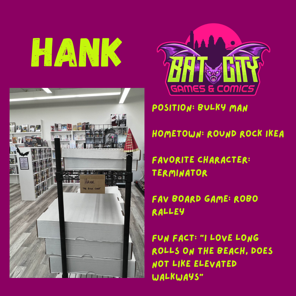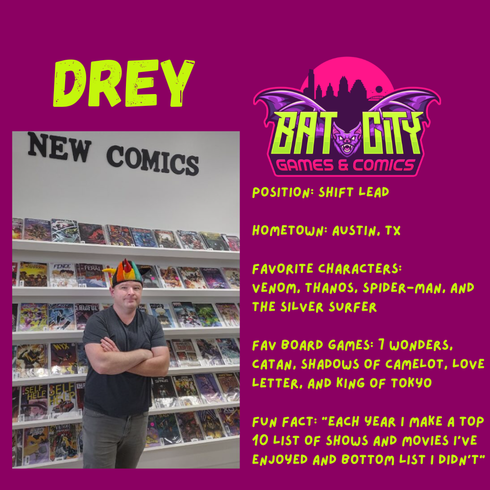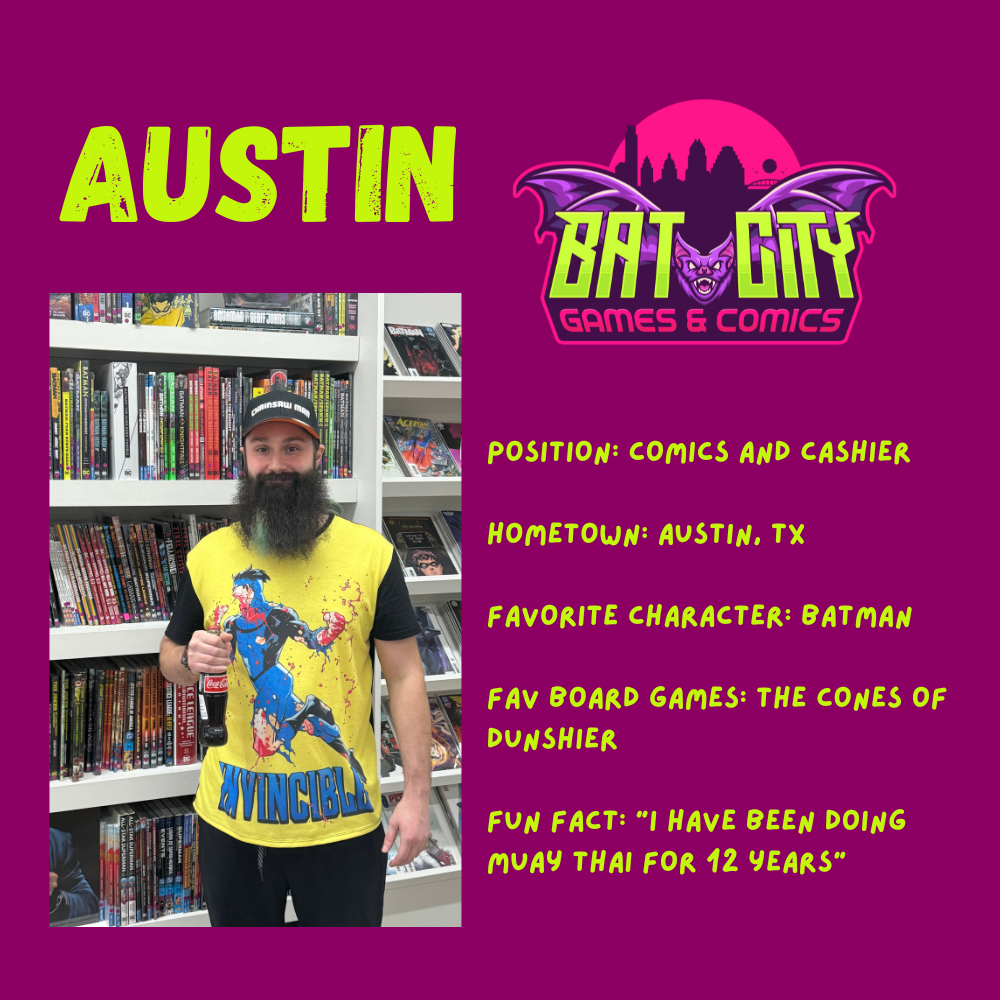 Our goal is to provide access to a wide-range of high-quality games, collectibles, and comics with top-notch customer service. We look forward to building a welcoming, inclusive community here in Austin. Meet the team below!